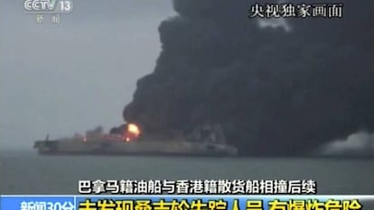 El petrolero iraní que chocó el sábado contra un barco carguero en las aguas del Mar Oriental de China podría explotar y hundirse, según reconocieron este lunes las autoridades del país. Los equipos de rescate se están encontrando con muchas dificultades para hallar a los 32 tripulantes desaparecidos tras el accidente, cuyas causas todavía se desconocen, y contener un posible vertido que provocaría un desastre medioambiental mayúsculo.