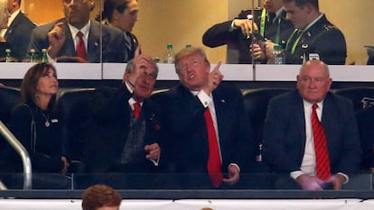 Abucheos, gritos y protestas. Así fue recibido Donald Trump este lunes en un estadio de fútbol americano con decenas de miles de aficionados durante una gira por el sur del país, donde se encuentran sus bases más conservadoras. El presidente asistía a la final del campeonato nacional de fútbol americano universitario en Atlanta, un evento de envergadura equiparable a la liga profesional, a la que Trump ha atacado al criticar a los jugadores afroamericanos que se arrodillan ante el himno en señal de protesta.