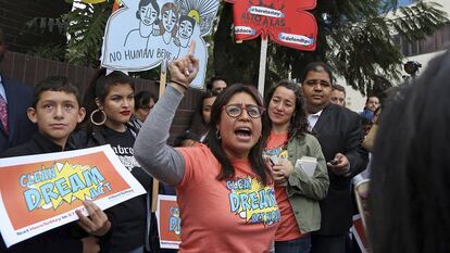 Después de meses de angustia, los llamados dreamers de Estados Unidos lograron este martes una victoria parcial contra Donald Trump. Un juez federal de California decidió bloquear la eliminación del programa que protege de la deportación a casi 800.000 jóvenes inmigrantes que llegaron a EE UU de forma irregular siendo menores de edad. Se trata de una medida cautelar mientras se dirime la denuncia que varios Gobiernos y organizaciones de California presentaron contra la decisión de Trump de acabar con el llamado programa DACA y exponer a la deportación a estos jóvenes que no conocen otro país.