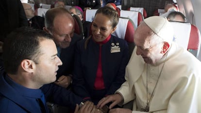 El papa Francisco casa a dos tripulantes en pleno vuelo