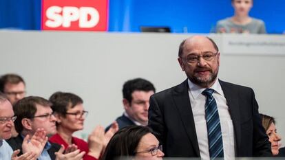 Fuera de la sala donde los políticos pronunciaron sus discursos, un militante contrario a la gran coalición explica por qué considera esta decisión nefasta para el partido. “El año pasado salimos a la calle y le preguntamos a la gente por qué había dejado de votar al SPD y nos dijeron: Ya no os creemos, habéis abandonado las políticas sociales. Les dijimos que Martin Schulz era diferente, que en él sí podían creer. Schulz juró que nunca haría una gran coalición con Merkel y ahora esto. ¿Qué cree que piensan nuestros votantes?”, explica sin ocultar su frustración Olaf Gerhard, miembro del SPD de la cuenca minera de Renania del Norte Westaflia, tradicional bastión socialdemócrata.