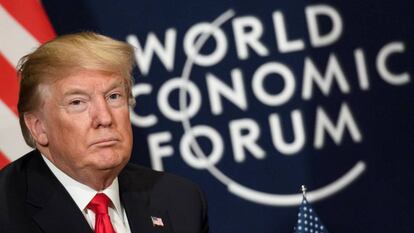 Trump no resistió la tentación, en el turno de preguntas, de hacer un reproche al hombre de Davos, algunos de los cuales forman parte de su gabinete, como el antiguo número dos de Goldman Sachs, habitual del WEF, y el citado Gary Cohn. A ese prototipo de ejecutivo de multinacional que forma parte de la élite global y que suele ser partidario de los demócratas en EE UU. “¿Si hubiera ganado mi oponente [Hillary Clinton], a la que algunos de los que están sentados en estas filas apoyaron, creen que la Bolsa hubiera subido el 50% como lo ha hecho desde mi elección? Yo creo que seguramente hubiera bajado el 50%”. Los datos, sin embargo, confirman la tendencia a la exageración del magnate. Desde las elecciones, los mercados han subido un 44% y desde que asumió el cargo, un 31%, según Bloomberg.