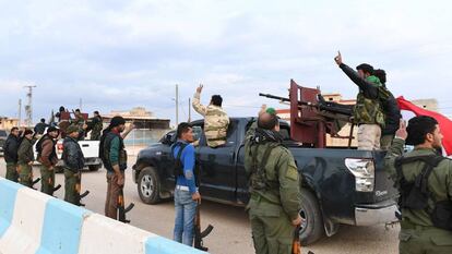 Imágenes difundidas en las redes sociales mostraban el momento en el que una hilera de todoterrenos y vehículos de artillería se acercaban al enclave kurdo con uniformados ondeando la bandera siria que eran recibidos por milicianos kurdos al grito de "uno, uno, uno, el pueblo sirio es uno". Entre las fuerzas paramilitares enviadas por El Asad se encuentran milicias entrenadas por Irán como la brigada Nuble u Zahraa y las Fuerzas Locales de Defensa. “El régimen ha optado por evitar un enfrentamiento directo y enviar milicias proiraníes a Afrin en apoyo a los kurdos, mientras concentra sus tropas regulares en otros frentes como Damasco o Homs”, explica por teléfono desde Estambul el analista sirio Nawar Oliver.