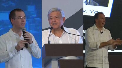 En año electoral, como este, la tradicional convención bancaria mexicana —la gran cumbre anual del sector financiero en el país norteamericano— se convierte en un desfile de candidatos. López Obrador ya acudió a la cita en 2012, meses antes de las elecciones. Y ha vuelto a hacerlo este año, minutos después de que presentasen sus programas económicos sus dos rivales por la presidencia de la segunda mayor potencia de América Latina, Ricardo Anaya (PAN, PRD y Movimiento Ciudadano) y José Antonio Meade (PRI). “Queremos aplicar una fórmula sencilla, pero trascendente y profunda: acabar con la corrupción, la impunidad y los privilegios”, prometió el jefe de Gobierno de la Ciudad de México entre 2000 y 2005.