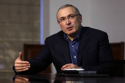 Tras pasar más de diez años prisión, acusado de diversos delitos económicos que él asegura que encubrían un castigo por su contundente oposición a Vladímir Putin, en diciembre de 2013 el exmagnate del petróleo ruso Mijaíl Jodorkovski (Moscú, 1963) salió libre “por motivos humanitarios” y descartó volver a meterse en política. Instalado inicialmente en Suiza, poco a poco fue traicionando su propósito inicial y hoy, afincado en Londres, un poco más cerca de la acción, es de nuevo uno de los opositores más relevantes del régimen de Putin desde el exilio. Dos días después de la contundente victoria de su enemigo en las elecciones rusas, y en medio de la elevada tensión de su país con Occidente generada tras el envenenamiento del espía Serguéi Skripal y su hija en la localidad británica de Salisbury, que Londres atribuye a Moscú, Jodorkovski recibió a un pequeño grupo de periodistas en el cuartel general londinense de su fundación Open Russia.