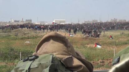 Las imágenes de un joven palestino abatido por francotiradores israelíes se han viralizado este sábado en redes sociales, un día después de que 16 compatriotas murieran durante las protestas de la Gran Marcha del Retorno. El fallecido ha sido identificado como Abdelfatá Abd al Nabi, de 18 años, según fuentes palestinas. El Ejército israelí no ha comentado lo ocurrido, según recoge el diario israelí Yedioth Aharonoth. En el vídeo (cuyas imágenes pueden herir su sensibilidad) se observa cómo el hombre corre con un neumático en dirección opuesta a la valla fronteriza cuando recibe un disparo por la espalda y cae al suelo. Otro manifestante le sacó de la zona.