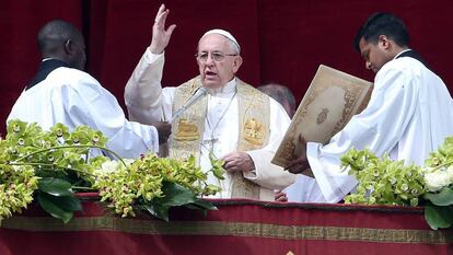 En su mensaje antes de impartir la bendición Urbi et Orbi —a la ciudad y al mundo— el Papa Francisco suele agitar conciencias repasando los conflictos que afligen a la humanidad y denunciando la violencia y las injusticias en diferentes partes del planeta. Este domingo, en el que los cristianos celebran la resurrección de Jesucristo, el Pontífice condenó particularmente la situación que se vive en “la amada y martirizada Siria”, arrasada por una guerra civil que comenzó en 2011 y pidió que “se ponga fin inmediatamente al exterminio que se está llevando a cabo, se respete el derecho humanitario y se proceda a facilitar el acceso a las ayudas” y que se garanticen las condiciones necesarias para el regreso de los refugiados. La situación en el país es especialmente crítica, sobre todo en Guta Oriental, donde las últimas semanas han muerto al menos 1.600 civiles bajo los bombardeos y que permanece bajo un duro asedio del régimen de Damasco desde hace cinco años.
