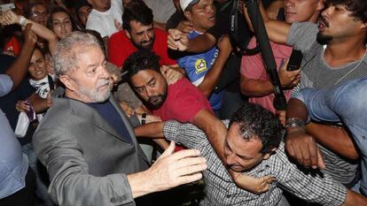 La mañana de este sábado había anunciado: “No les tengo miedo, voy a demostrar que soy inocente”. En el que probablemente haya sido su último acto político antes de ser encarcelado, el popular expresidente, que gobernó el país entre 2003 y 2010, ha criticado a los investigadores del caso Lava Jato, que lo han acusado de corrupción y al juez Sergio Moro, que lo ha condenado. “Soy la única persona en el mundo que está procesada por un piso que ni siquiera es mío", ha declarado.