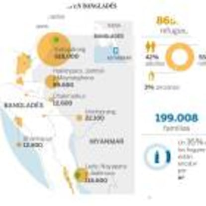 Los rohingyá son una minoría musulmana, la más odiada y perseguida de Myanmar. Unos 700.000 de ellos huyeron a partir de agosto de la represión del Ejército birmano y ahora afrontan graves riesgos por el monzón mientras se adaptan al hacinamiento en Bangladés. Viven en el mayor campo de refugiados del mundo, que tiene más habitantes que Helsinki. Las autoridades incluso planean trasladar a parte a una isla flotante. EL PAÍS analiza en una serie de tres reportajes la sistemática persecución de la que huyen, que según algunos académicos podría constituir un genocidio, los esfuerzos para protegerlos ante el peligro de corrimientos de tierras e inundaciones y la enorme presión que supone su desembarco en la superpoblada y pobre Bangladés.