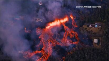 La lava escupida en los últimos días por el volcán Kilauea, el más activo de Hawái, ha devorado ya más de una veintena de casas y amenaza a más de 600, mientras continúan abriéndose grietas por las que manan gases tóxicos y roca fundida. Ya son ocho las aperturas por las que brotan los fluidos del volcán en este evento eruptivo, que los geólogos ya comparan con el de 1855, en el que las emanaciones duraron 88 días y cubrieron 15 kilómetros cuadrados de terreno. El gobernador ha declarado el estado de emergencia.