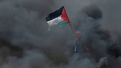 Gaza ha vivido este lunes la jornada más sangrienta desde que se inició la ola de protestas masivas el pasado 30 de marzo. Marcada por el lanzamiento de piedras y de neumáticos ardiendo, la marcha de decenas de miles de palestinos en el límite de la Franja con Israel contra el traslado de la Embajada de EE UU a Jerusalén se ha cobrado la vida de al menos 59 manifestantes —entre ellos una bebé de ocho meses tras haber inhalado gases lacrimógenos—, y ha causado más de un millar de heridos por disparos de los soldados, según informan fuentes sanitarias del enclave costero. El balance de víctimas en un solo día no tiene precedentes desde la guerra de 2014 en Gaza. Un portavoz castrense aseguró que, pese a las advertencias lanzadas por el Ejército, cerca de 40.000 palestinos participaron en los disturbios en más de una docena de puntos de la valla de separación y arrojaron bombas incendiarias y artefactos explosivos. La frontera ha sido declarada zona militar cerrada.
