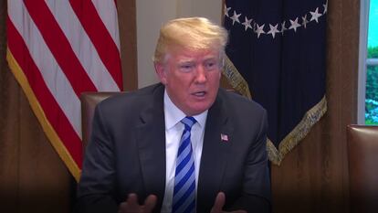 "Estamos sacando a gente del país, no te creerías cómo de mala es esta gente", respondió Trump, quien aseguró que están siendo expulsados a "una ratio nunca vista". La ocasión le sirvió para atizar su retórica antimigratoria. El mandatario volvió a afirmar que las "leyes débiles" impiden a su Gobierno deportar a más indocumentados y a culpar a México de "no hacer nada" por EE UU en el control fronterizo. La realidad, sin embargo, es distinta. En muchos casos, son decisiones de los tribunales y no leyes las que determinan la capacidad de EE UU de deportar más rápidamente a inmigrantes. Y México ha reforzado enormemente en los últimos años su vigilancia fronteriza y ha disparado sus expulsiones de indocumentados.