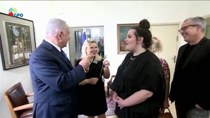 Vestida con un kimono al estilo japonés y un peinado de geisha, la cantante de 25 años fue recibida este miércoles por Netanyahu y su esposa Sara en la residencia oficial, a tan solo dos días del traslado de la embajada de EE UU de Tel Aviv a Jerusalén, evento que desató una ola de protestas en la que murieron 60 personas a manos del Ejército Israelí. “Estoy muy contenta de que hayamos logrado crear un motivo de alegría en un país que no tiene muchas oportunidades de celebración”, fueron las palabras de la cantante tras su victoria, de vuelta a su país.