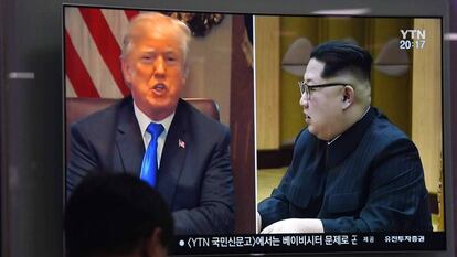 El republicano también volvió tímidamente a la retórica beligerante del pasado. Avisó de que la capacidad nuclear de EE UU es “masiva y poderosa”. “Nuestro Ejército está listo si es necesario”, clamó después en un acto en la Casa Blanca. Y advirtió de que continuará la “campaña de máxima presión” a Pyongyang, que tiene suspendidos sus ensayos nucleares, e instó a Kim a aprovechar la “oportunidad de acabar con décadas de pobreza y opresión escogiendo el camino de la desnuclearización y la comunidad de naciones”.