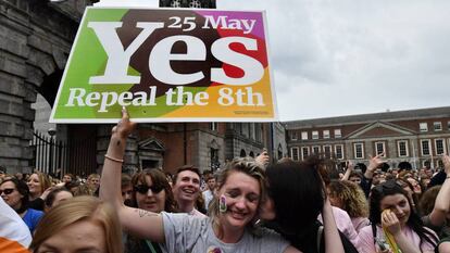 Irlanda rompió con su pasado, culminó su modernización social y mandó un poderoso mensaje al mundo al aprobar, por un contundente 66,4%, la legalización del aborto. El histórico resultado del referéndum, nuevo hito en una corriente feminista global e imparable, se celebró en Dublín por una generación joven y cosmopolita que toma las riendas del último bastión del conservadurismo católico. El sí ganó en el campo y en la ciudad, entre hombres y mujeres. El último tabú ha caído en un país que, tras aprobar el matrimonio igualitario hace tres años, rechaza definitivamente la injerencia de la Iglesia.