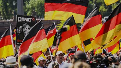 Afd alardea de su creciente asertividad y unos 5.000 seguidores recorren el centro de la capital alemana pertrechados de banderas alemanas y al grito de “fuera Merkel”