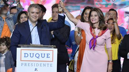 Duque logró el 39,1% de los votos en unos comicios con una participación del 53,38%, un récord para el país andino. Superó incluso los apoyos obtenidos en 2006 por su mentor, el expresidente Álvaro Uribe. Su discurso estaba centrado en la recuperación económica. No obstante, para los colombianos el aspirante del Centro Democrático representaba, entre todas las opciones, las posiciones más conservadoras y el rechazo al proceso de negociación con la antigua guerrilla liderado por el propio Uribe. Fue portavoz de la campaña del no antes del plebiscito de 2016, su posición se impuso entonces por la mínima y el domingo mejoró esos resultados por más de un millón de sufragios.