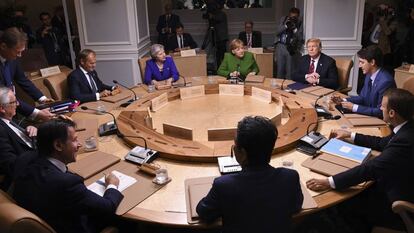 El G7, formado por EE UU, Canadá, Francia, Alemania, Japón, Reino Unido e Italia, constituye una especie de club de países ricos que comparten una visión global del mundo y se reúne cada cierto tiempo para fijar principios de actuación política y económica. Al término de cada una de esas cumbres suelen emitir un comunicado en el que se reafirman esos valores comunes y las discrepancias entre ellos suelen leerse entre líneas, en declaraciones anónimas o discursos llenos de matices. Con Donald Trump, las dinámicas de este club han cambiado en el fondo y en las formas.