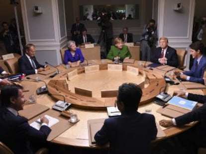 El primer día Donald Trump añadió otro frente más al salir en defensa del regreso de Rusia al grupo, que fue expulsada en 2014 por la anexión ilegal de Crimea en el marco de la crisis de Ucrania. Que solo le apoyase el nuevo Gobierno populista de Italia refleja que las turbulencias entre aliados van más allá de la era Trump. Preguntado sobre Crimea, el neoyorquino no dejó lugar a dudas: Barack Obama. “Él dejó que ocurriera”, sentenció.