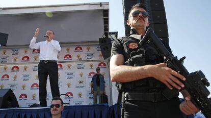 Pero a tenor de las encuestas, la batalla se promete complicada para el mandatario turco, cuyo Partido de la Justicia y el Desarrollo (AKP) se presenta en coalición con dos partidos de ultraderecha en las elecciones legislativas que tendrán lugar el mismo día con el objetivo de evitar perder la mayoría absoluta en el nuevo hemiciclo. “Repetir la mayoría en el Parlamento va a ser complicado, pero espero que la conservemos. Las presidenciales las ganaremos en segunda ronda”, opina un asesor de Erdogan. Si en las elecciones de 2015 el AKP y las formaciones que se han aliado ahora con él (MHP y BBP) obtuvieron casi el 62 % de los votos, en esta ocasión los sondeos les otorgan entre el 45% y el 50%. “Gente que votó sí en el referéndum del año pasado ahora no votará por Erdogan, porque durante estos meses han visto como funciona de facto el nuevo sistema y no les ha gustado. La democracia ha empeorado y también la economía”, asegura a EL PAÍS un columnista de un medio progubernamental.