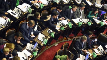 En Diputados fue una sesión de infarto. Los números bailaron durante toda la jornada. Dos horas antes de la votación, los partidarios del Sí lo consideraban perdido. Al final, la balanza se inclinó por el cambio de voto de última hora de unos pocos legisladores. La fractura de la sociedad argentina sobre el aborto se repitió en el interior del hemiciclo y de los partidos políticos. Todos los bloques votaron divididos, con excepción de la izquierda, con una postura unánime a favor de la interrupción voluntaria del embarazo. En la actualidad, el aborto es ilegal, excepto en casos de violación y de riesgo para la salud de la madre. Las mujeres que interrumpen su embarazo se enfrentan a penas de cárcel de entre uno y cuatro años. El proyecto prevé que el aborto sea libre hasta la semana 14 y después sólo si el embarazo es fruto de una violación, hay peligro para la gestante o malformación fetal.