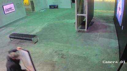 "Recibimos una llamada por un allanamiento en una propiedad en el oeste de la ciudad", comentó Jenifferjit Sidhu, portavoz de la policía de Toronto a la agencia AFP. "En algún momento del domingo, un grabado de Banksy desapareció de la exposición", agregó. La policía ha compartido en redes sociales las imágenes del hurto filmadas por una cámara de vigilancia. En un vídeo grabado el domingo a las 5:04 de la madrugada, se ve cómo un individuo con jersey negro y gorra camuflada ingresa en una de las salas de exhibición, descuelga la pieza y abandona el lugar con el botín. Todo en menos de 30 segundos. La exposición de Banksy, de donde fue sustraída la obra, se celebra en un edificio industrial transformado en galería de arte, ubicado en la calle Sterling.