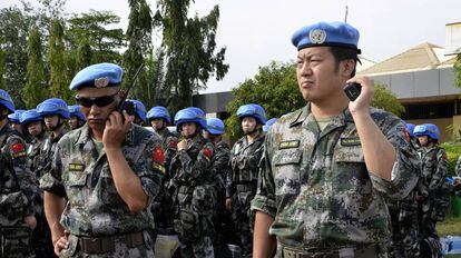 En el terreno militar, ese interés es palpable. Ya en 2008, envió al golfo de Adén su primer contingente fuera de Asia-Pacífico, para participar en la fuerza internacional contra la piratería. La primera base militar de China en el extranjero, inaugurada en agosto del año pasado, se encuentra en Yibuti, en el Cuerno de África. Pekín también participa activamente, con aportaciones económicas y de tropas, en misiones de paz en el continente: es el principal contribuyente entre los cinco miembros permanentes del Consejo de Seguridad, y se encuentra entre los doce primeros de todo el mundo. Mantiene 2.400 soldados en siete operaciones de paz en el continente. También ha ofrecido equipar a fuerzas de paz africanas.