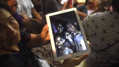 Este lunes la Marina se felicitaba en su página de Facebook por haber hallado sanos y salvos a los 13 desaparecidos. “¡Les hemos encontrado! Pero nuestra misión no está completa, tenemos que llevarles asistencia médica, geles energéticos y equipamientos que les sustentes a ellos y los colegas en ese punto (de la cueva) hasta que esté en marcha un plan para sacarles”. La noticia fue acogida con un júbilo feroz en un país que mantenía la esperanza , pero se preparaba para lo peor mientras se desarrollaba una denodada operación de rescate contrarreloj en medio de fuertes lluvias, en una cueva laberíntica, taponada por el agua y el barro y en completa oscuridad.