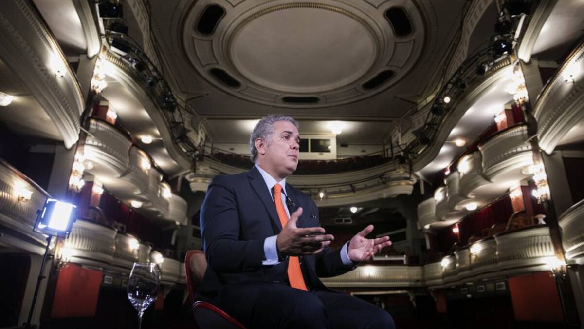 Duque, nacido en Bogotá, recogerá el testigo de Juan Manuel Santos el próximo 7 de agosto, una semana después de cumplir 42 años. Promete corregir los acuerdos de paz con las FARC alcanzados por su antecesor “sin hacerlos trizas”, se propone unir a un país dividido tras más de medio siglo de conflicto armado y busca disipar las inquietudes de una parte de la sociedad que desconfía del expresidente Álvaro Uribe, su principal mentor. Esta entrevista se celebró el lunes pasado en el escenario del Teatro Alcázar de la capital a petición de su equipo.