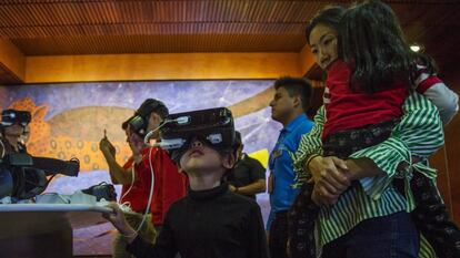Los visores con vídeo 360, que han sido instalados en el Museo Nacional de Antropología e Historia y en el Museo de Sitio de Teotihuacan, muestran durante 10 minutos un paseo por el inframundo teotihuacano. El túnel, descubierto en 2003, ha sido excavado y explorado durante los últimos nueve años. En la experiencia con realidad virtual es posible ver los espacios que los teotihuacanos diseñaron para hacer rituales sagrados, así como algunos objetos ––como vasijas y huesos de animales–– que acompañaron a sus líderes en su viaje al inframundo. “El público no va a poder acceder desafortunadamente porque es un lugar muy especial, muy delicado y con muchos riesgos. La idea de este trabajo es que la gente que no pueda entrar, pueda tener una experiencia de poderlo visitar virtualmente”, explica el arqueólogo Sergio Gómez, encargado de la investigación en el Proyecto Tlalocan.