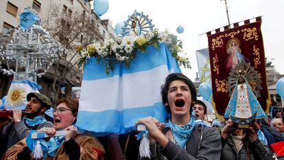 Decenas de buses cargados de manifestantes llegaron a Buenos Aires desde Salta, Tucumán, Jujuy, Catamarca, La Rioja, San Juan o Santiago del Estero para ocupar el lado de la plaza destinado a los “celestes”, por el color que identifica a los grupos antiabortistas. Detrás de semejante despliegue estuvo la Iglesia y también numerosas agrupaciones evangélicas, que poco a poco han ido ganando poder entre las comunidades. La vigilia celeste fue por momentos una gran misa a cielo abierto, con rezos comunitarios, el reparto de rosarios y vírgenes y grandes cruces de madera que pasaban de mano en mano como en procesión.