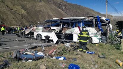 Por primera vez, Ecuador ha reaccionado con contundencia ante una tragedia, en forma de accidente de autobús, que se repite cada poco tiempo en el país. En la madrugada del lunes al martes, un bus procedente de Colombia con 33 pasajeros chocó contra un coche y terminó estrellándose más de un kilómetro después, tras dar varias vueltas, contra tres viviendas que estaban al pie de la carretera. El accidente dejó 24 muertos, incluyendo tres niños que viajaban en el automóvil con el que impactó el transporte colectivo, y 22 heridos, cuatro de ellos, en estado crítico. Ante la magnitud del accidente y el avance de la investigación, el presidente de Ecuador, Lenín Moreno, ordenó la destitución de los responsables de Tránsito que permitieron que el autobús entrase a Ecuador saltándose los controles exigidos en la frontera.