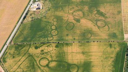 La sequía define en el suelo las marcas de vestigios neolíticos, asentamientos de la Edad de Hierro o una granja romana