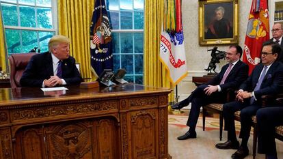 Peña Nieto también tuvo palabras de agradecimiento, aunque sin citarlo, con el presidente electo, Andrés Manuel López Obrador, que nombró un equipo de asesores, liderado por Jesús Seade, para que se incorporaran a las conversaciones tras la victoria del líder de Morena el 1 de julio. De hecho, ha sido durante la transición del Gobierno de México cuando las negociaciones han cobrado una velocidad de crucero. “Estoy muy impresionado con él”, dijo Trump sobre López Obrador.