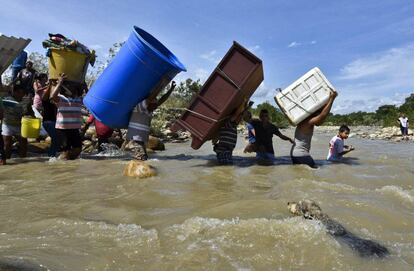 Ese frágil equilibrio voló por los aires a mediados de 2015, cuando el gobierno de Maduro lanzó las Operaciones de Liberación del Pueblo (OLP). En una porosa frontera que es también un corredor para el tráfico de armas, drogas, contrabando y combustibles, las OLP en teoría estaban dirigidas contra el “paramilitarismo colombiano”, pero terminaron convertidas en una escalada contra los colombianos que incluyó inspecciones arbitrarias, intimidación, saqueos y demoliciones. Fue el preludio del cierre de la frontera. El episodio se saldó con la deportación de unas 2.000 personas y el retorno masivo de más de 22.000 que llevaban sus enseres entre pasos, trochas y puentes con la esperanza de reconstruir sus viviendas del otro lado.