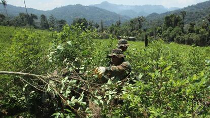 Ya es oficial. A pesar de los enormes esfuerzos de los últimos años, Colombia no ha conseguido revertir el aumento constante de los cultivos ilícitos. El nuevo Gobierno, presidido por Iván Duque, se enfrenta al desafío de reducir la mayor cantidad de hectáreas de coca de las que se tenga registro. En 2017, según el informe anual del Sistema Integrado de Monitoreo de Cultivos Ilícitos de Naciones Unidas (Simci), presentado este miércoles en Bogotá, se produjo un incremento del 17%, equivalente a 25.000 hectáreas sembradas. La extensión total creció de 146.000 a 171.000 hectáreas, la cifra más alta desde que la ONU vigila el tamaño agregado de estos cultivos.