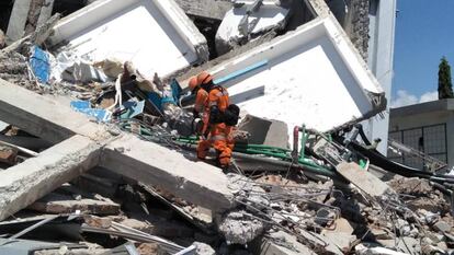 Nabella Salsabilla llevaba cuatro días esperando una llamada esperanzadora desde Palu. Ha ocurrido este lunes por la noche, cuando su hermana le confirmó finalmente que ella y toda su familia están a salvo del potente terremoto y el tsunami que azotó esta localizad situada en la zona central de la isla indonesia de Célebes el pasado viernes y que ha causado, según el balance oficial, 844 muertos. Aunque la cifra de víctimas oficial apenas ha variado en las últimas horas, las perspectivas son sombrías: centenares de personas siguen atrapadas bajo los escombros, los equipos de rescate operan con enormes dificultades y el país ha pedido ayuda humanitaria para hacer frente al desastre.