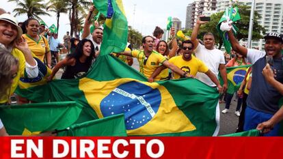 El candidato ultraderechista a la Presidencia de Brasil, Jair Bolsonaro, ha reanudado su campaña tras obtener un imponente 46,03% de los votos el domingo, un resultado celebrado con fuerza por los mercados. Bolsonaro se medirá en segunda vuelta el 28 de octubre con Fernando Haddad, el heredero del expresidente Luiz Inácio Lula da Silva, que se quedó en el 29,28% de los votos. Será necesario un vuelco radical, casi imposible dados los resultados de este domingo, para que Bolsonaro no se convierta en el próximo presidente de Brasil. EL PAÍS te cuenta, en vivo, el minuto a minuto de la contienda: