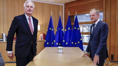 "Mañana [miércoles] voy a preguntar a la primera ministra May si tiene propuestas concretas sobre cómo salir del punto muerto de la negociación", señaló el presidente del Consejo de la Unión Europea, Donald Tusk, tras reunirse en Bruselas con Barnier.