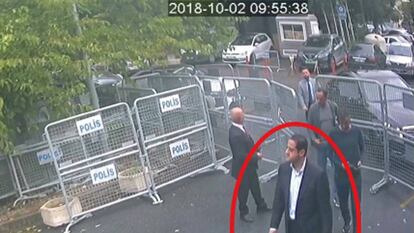 Entre estos indicios está el hecho de que de los 15 saudíes a los que se cree autores del asesinato, varias personas son muy cercanas al príncipe saudí. Entre ellos destaca Maher Abdulaziz Mutreb, al que el diario oficialista turco Sabah considera “el jefe del equipo de ejecutores” y del que este jueves publicó nuevas fotos procedentes de cámaras de seguridad que prueban sus movimientos en Estambul: desde la entrada a Turquía el día 2 de octubre de madrugada tras aterrizar en el Aeropuerto Atatürk en un avión propiedad de una empresa cercana al Gobierno saudí, a su entrada al consulado a las 9:55 de la mañana, su salida de la residencia del cónsul a las 16:53 y su partida en otra aeronave. Mutreb, de 47 años, ha sido identificado como un oficial de inteligencia que en el pasado trabajó en la embajada saudí de Londres, según un diplomático británico citado por el Times, y se le ha fotografiado acompañando a Bin Salmán en varios viajes al extranjero.