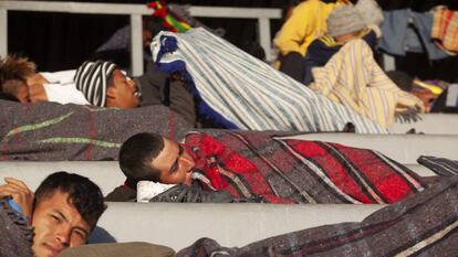 Ciudad de México es para muchos migrantes la primera parada en la que se quedan en un albergue, bajo techo. “Por fin, estamos tranquilos, el viaje ha sido pesadísimo, pero gracias a Dios ya estamos aquí”, contó emocionado Franklin Rodríguez, un hondureño de 19 años, con un vendaje en la mano derecha tras un accidente en el camino desde Veracruz. Es un campamento enorme. En las inmediaciones de El Palillo se instaló un comedor, contenedores de agua para que los migrantes puedan ducharse y lavar su ropa, consultorios médicos móviles, módulos de atención psicológica y colchonetas. Los migrantes se arremolinaron para recoger abrigos, cobijas y ropa donada. Otros cargaron sus teléfonos en enjambres de cables enmarañados y cargadores. Unos pocos colgaron su ropa en la malla que rodea el estadio. El mayor centro de acopio para las donaciones se concentraron desde el fin de semana en el Zócalo, la plaza principal de la capital mexicana.