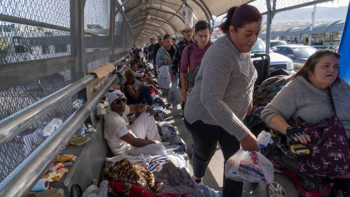 Los inmigrantes ya están tocando las puertas de Estados Unidos. Un grupo de al menos 200 personas espera, desde hace dos semanas, su turno para pedir asilo en Estados Unidos. Lo han hecho en el puente internacional Paso del Norte, en los límites entre Ciudad Juárez (Chihuahua, México) y El Paso (Texas, EE UU). Allí, desde la mitad del puente que todavía es territorio mexicano han esperado para hacer una solicitud formal al Gobierno estadounidense. En el cruce se han hecho dos filas: la de quienes con visados en mano caminan rápidamente para pisar Estados Unidos legalmente —unas 19.000 personas al día— y la de quienes aguardan durante días para ser atendidos por los agentes estadounidenses. La segunda línea casi nunca avanza. Cuando ocurre, suelen ser mujeres y niños que son invitados por la policía fronteriza a que entren a los oficinas de inmigración del lado estadounidense para comenzar el trámite.