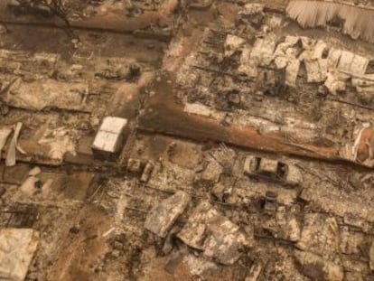 El presidente Donald Trump y las autoridades de California se dieron una tregua institucional este sábado sobre las ruinas del incendio más devastador de la historia del Estado. Trump visitó la zona cero de la catástrofe de Paradise, en el norte de California, donde un incendio arrasó el 80% de la ciudad el pasado jueves. Al menos 71 personas han sido halladas muertas bajo los escombros y la lista de desaparecidos se sitúa en más de mil. “No creo que volvamos a tener algo de esta magnitud”, dijo Trump rodeado de escombros. “Espero que este sea el último de estos porque este ha sido realmente malo”.