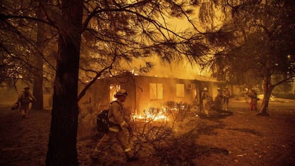 No era una progresión normal de un fuego. Esto es lo que están viendo los bomberos de California desde hace un par de años. “California lleva cinco años en situación de sequía”, explica Steve Kaufmann, portavoz de Cal Fire en el condado de Ventura, donde se vivió en diciembre de 2017 el incendio más grande de la historia del Estado, que sería superado solo ocho meses después. “Para dar una explicación sencilla: en esta zona de California no ha llovido desde hace 214 días”. La tierra en la zona de Paradise está extraordinariamente seca.
