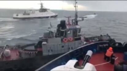 El incidente entre buques rusos y ucranios ocurrió el domingo cuando Rusia impidió el paso a la flotilla (dos patrulleros y un remolcador) que navegaba desde Odessa, en el mar Negro, rumbo a Mariúpol, en el mar de Azov, y la amenazó con disparar. Los rusos cumplieron sus amenazas y, a consecuencia de los disparos, varios marineros ucranios resultaron heridos, aparentemente sin gravedad. El incidente ha quedado documentado en diversos vídeos que se pueden encontrar en Internet, en los que se ve cómo la lancha rusa arremete contra el buque ucranio, así como en las grabaciones sonoras de las transmisiones de radio entre los dos contingentes enfrentados. “Tenemos heridos. Necesitamos ayuda”, exclamaba una agitada voz en ucranio. “Abriremos fuego a dar, tenemos ametralladoras de gran calibre. Salgan con las manos en alto”, contestaba, con resolución, otra voz en ruso.