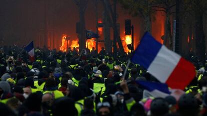 Toda la cuestión consiste en saber hasta qué punto son responsables los chalecos amarillos de los disturbios. La inmensa mayoría asistía a ellos entre atónita y asustada. Algunos de los chalecos amarillos y políticos que simpatizan con ellos denuncian a los violentos como grupos externos. Culpan al Gobierno de poner el foco en los violentos para demonizarlos a todos en su conjunto. El problema es que, al ser un movimiento tan heterogéneo y sin la organización propia de un sindicato o un partido, cualquier violento puede reclamar que forma parte de él. Para ser chaleco amarillo solo hace falta ponerse uno.