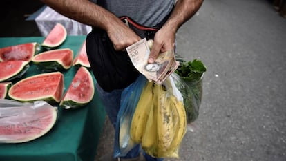 César Reina, de 45 años, hace milagros con el sueldo mínimo que gana como mensajero en una empresa. "Antes, uno podía guardar un poco del salario y juntar para comprarse algo. Ahora se vive al día". Vive al día en un barrio en La Guaira, en las afueras de Caracas, y desde hace dos meses comenzó a ocupar las horas que le quedan libres haciendo trabajo de albañilería a destajo. "Pinto, reparo cosas, hago lo que sea. Con eso pude pagar la inscripción y los útiles escolares de mi hija pequeña, porque solo el pantalón para la escuela me costaba 1.800 bolívares [el salario mínimo que regía desde agosto hasta este jueves, cuando el Gobierno lo aumentó hasta los 4.500 bolívares soberanos]". La mayor de sus hijas, de 21 años, emigró a Chile a principios de noviembre sin ni siquiera haber podido terminar la carrera de Comunicación Social. "Allá ya tiene trabajo y está mejor".