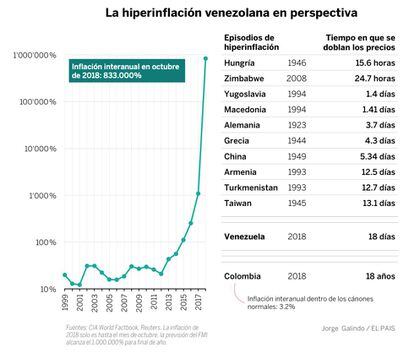 La hiperinflación venezolana no alcanza las surrealistas cotas de la húngara en la posguerra o de las de los países balcánicos en los conflictos que rompieron Yugoslavia a principios de los noventa. Pero es con poca duda la más alta de los últimos 25 años, un periodo en el que se suponía que este tipo de valores eran cosa del pasado.