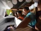 Normalmente, a las nueve de la noche se apagan las luces, pero hoy son las 11 y está a punto de llegar Santa Claus. Junto a la puerta de entrada, hay un árbol de Navidad con medio centenar de regalos. Los adultos se lanzan a por sus paquetes y abren cajas con su nombre que contienen sencillas zapatillas de deporte para cada uno. Al mismo tiempo, los niños rompen excitados papeles de regalo que envuelven calcetines, osos de trapo y coches de hierro que caben en la mano. Juguetes fáciles de empacar cuando haya que reemprender el camino.