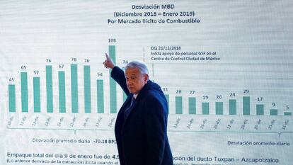Primero fue la batalla de austeridad. El Gobierno de López Obrador arrancó en diciembre luchando contra los privilegios y excesos de los altos funcionarios de la burocracia. La batalla generó muchas resistencias y las consecuencias pasaron desapercibidas para muchos. El conflicto no ha concluido porque está a la espera de que los jueces avalen la primera gran norma de la era del Movimiento de Regeneración Nacional (Morena). Eso no ha impedido al líder izquierdista encarar una nueva tormenta generada por su ofensiva contra el robo de combustible, un delito que ha gozado de la impunidad en los sexenios anteriores y cuyo combate ha impactado en la vida diaria de miles de mexicanos.
